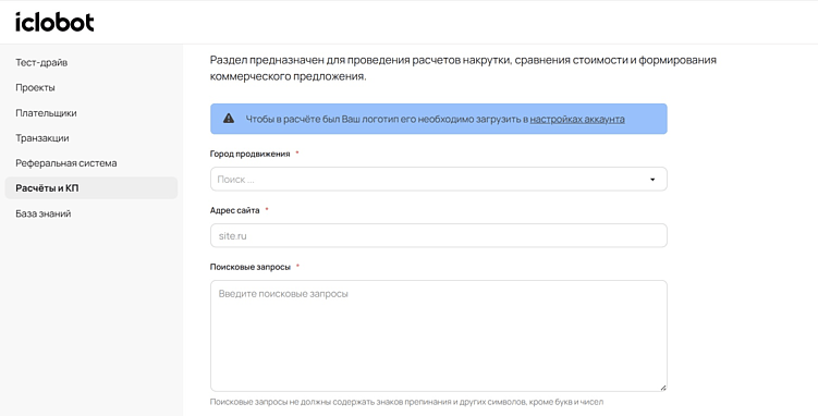 Среди его преимуществ могу отметить в первую очередь хороший рост по позициям, удобный и быстрый запуск проектов, возможность общения с менеджером только при возникновении вопросов. Также обратила внимание на наличие реферальной программы (можно зарабатывать на запуске чужих проектов). Из недостатков: калькулятор очень медленно работает, возможность для теста выбрать только 3 запроса, минимальная сумма пополнения в личном кабинете 3000 рублей.