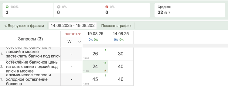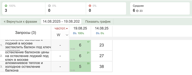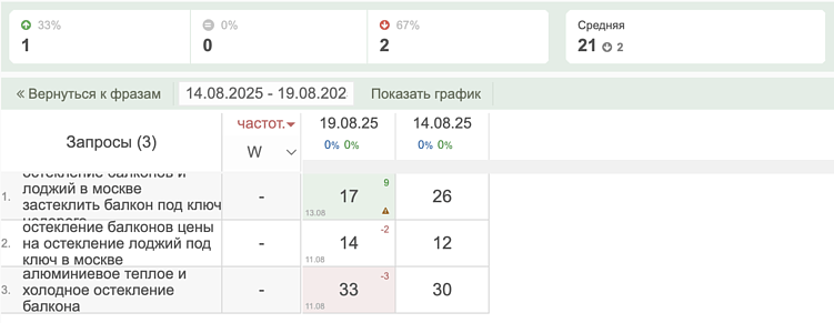 Двое из трех позиций действительно хорошо себя показали, но третий запрос просел.