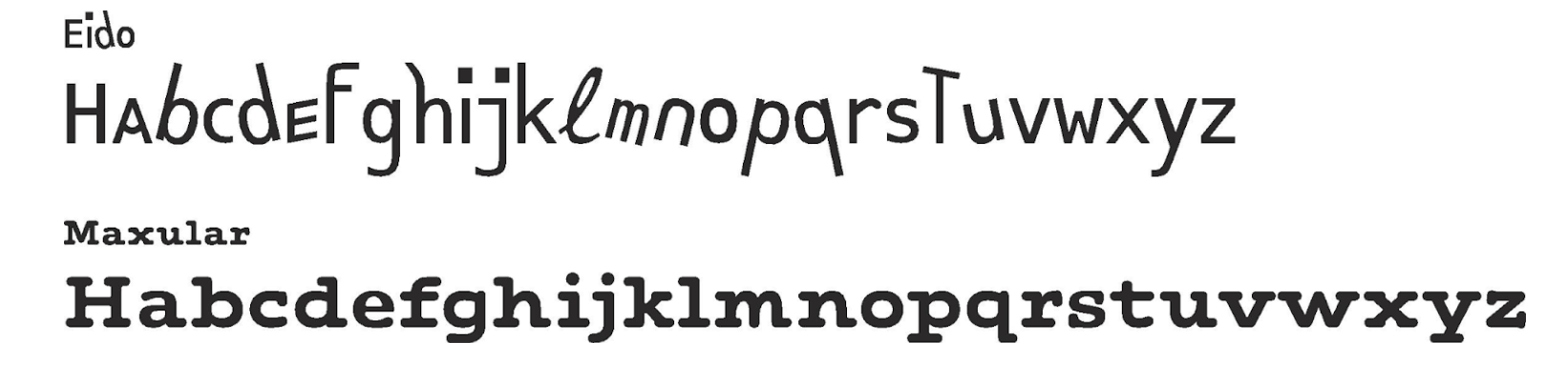 Шрифты Eido и Maxular Rx, специально разработанные для людей с дегенерацией желтого пятна, также стали объектом пристального внимания исследователей (Bernard, Aguilar & Castet, 2016, Стивен Скэггс). Сравнительные тесты с широко используемыми шрифтами, такими как Times New Roman, Helvetica и Courier, выявили нюансы в их эффективности и подчеркнули специфические требования к шрифтам для людей с данным заболеванием.