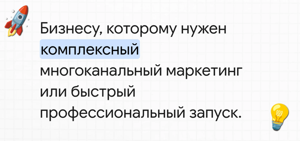 Если вы пришли к выводу, что вашему бизнесу нужна экспертиза целой команды, которая погрузится в ваш проект и будет работать на конкретный результат (рост заявок, продаж, прибыли).