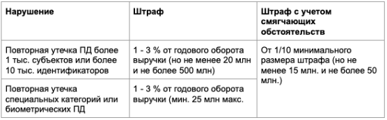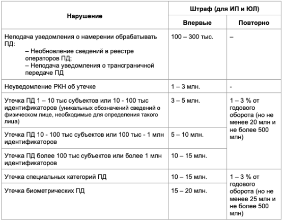 По ссылке собрали таблицу со всеми штрафами за нарушения законодательства в области персональных данных.