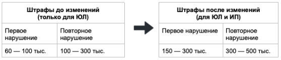 → Почти втрое увеличатся штрафы за обработку ПД в не предусмотренных законом случаях, а также за обработку ПД, несовместимую с целями сбора.