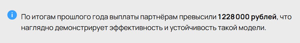 Выплаты партнёрам. 11% от всех оплат привлечённого клиента, при этом выплаты продолжаются на протяжении всего периода сотрудничества.