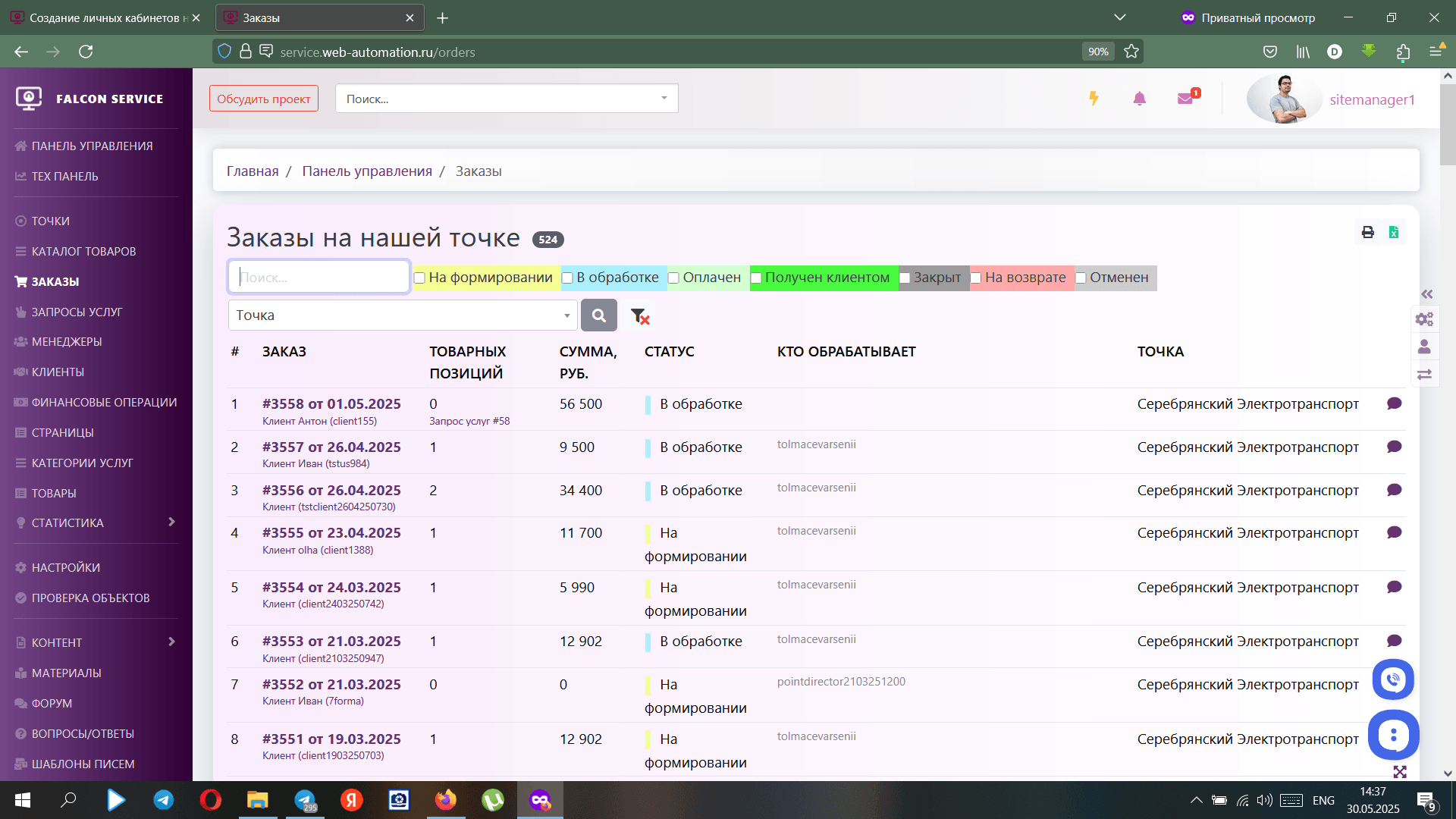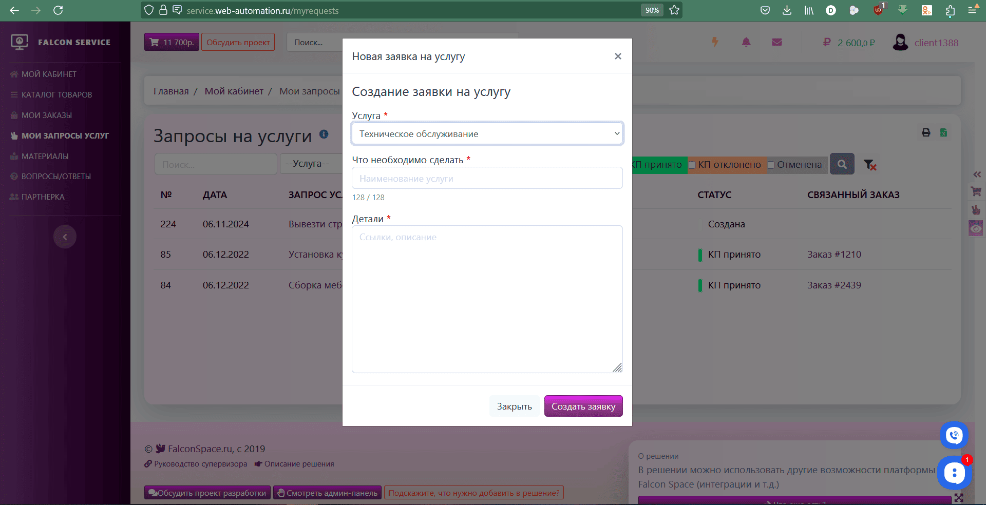 Falcon Service - сервис с личными кабинетами для клиентов и менеджеров на точках предприятия (филиалы, департаменты и т.д.). Страница решения Falcon Service