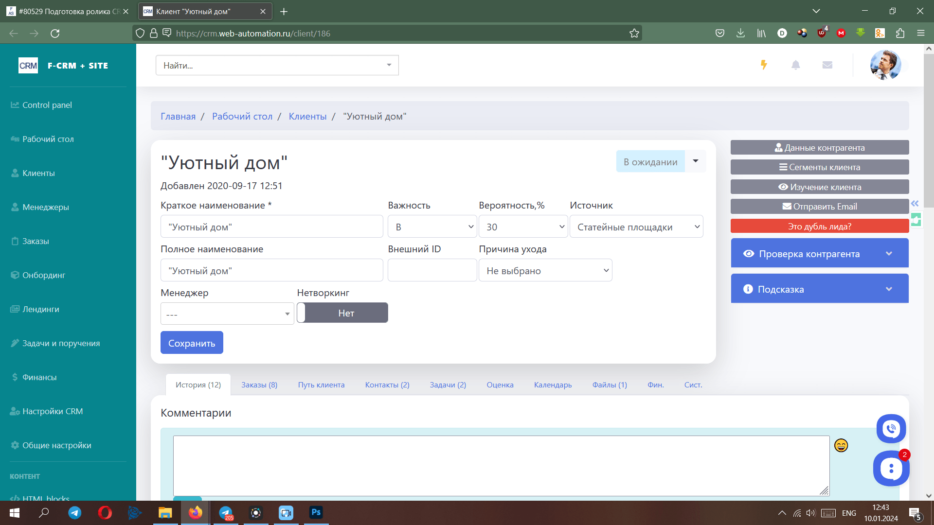 Если брать наш пример, то мы отдельно ведем CRM и отдельно ведем систему реализации клиентских проектов. При этом связь между системами есть, и она реализована через специальные поля связи (идентификатор клиента).