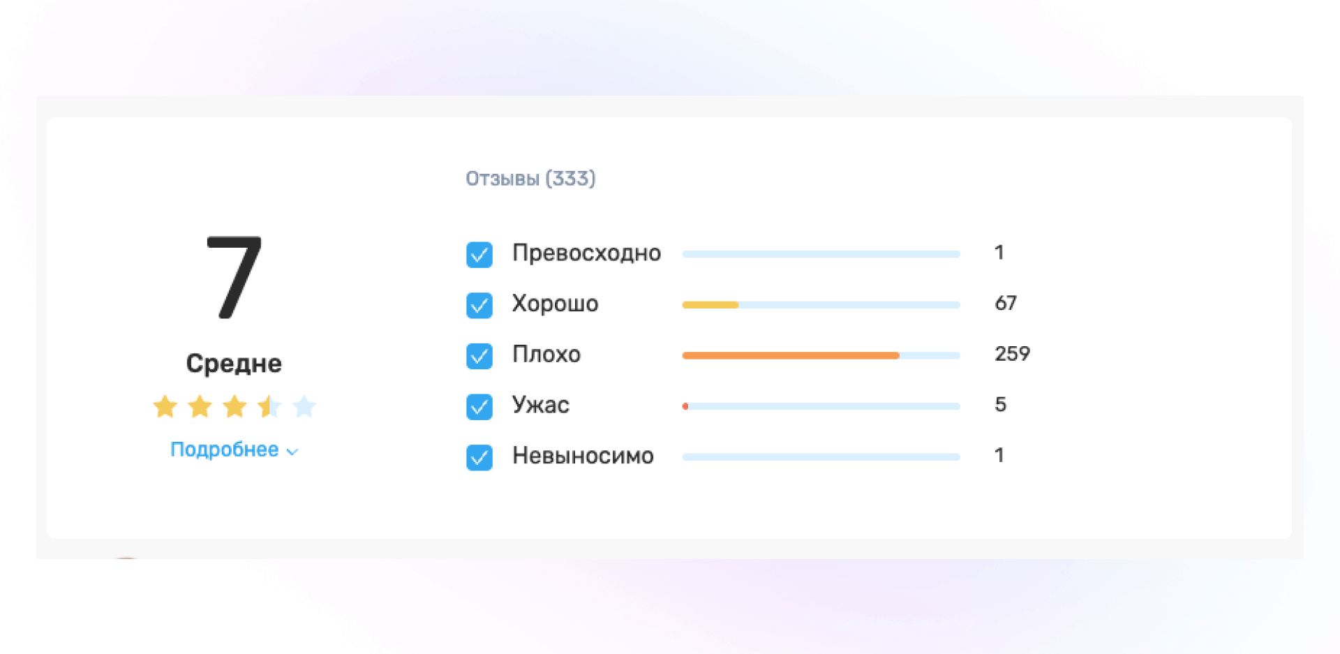 На таких площадках вы почти всегда увидите крайне низкий рейтинг: 1.0 — 2.1. При этом рядом размещаются пометки крупным шрифтом: