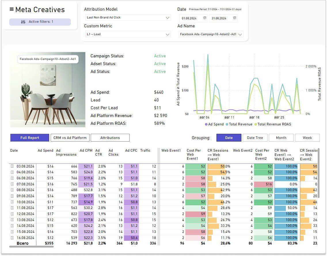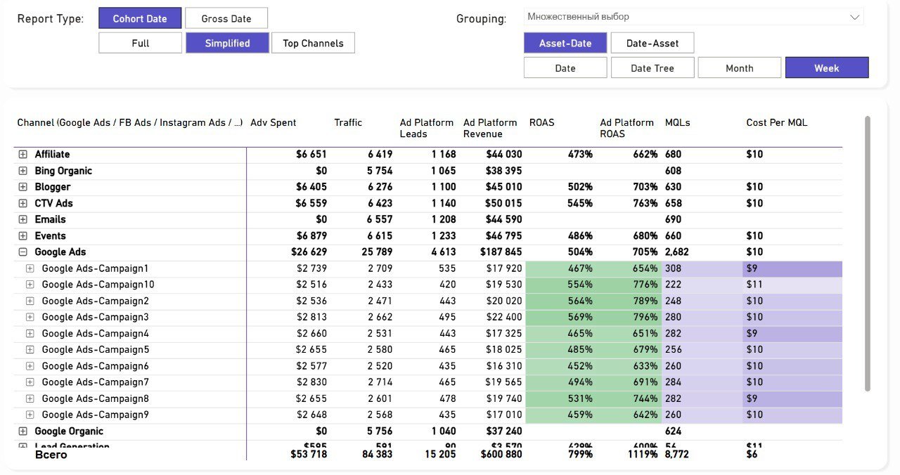 Мы задумались, почему бы не сделать сквозную аналитику доступнее и не оставить только самые необходимые функции, которые напрямую влияют на прибыль. Мы разработали базовую версию, которая собирает данные из тех же каналов, что и полноценное решение: например, можно подключить любой рекламный канал, веб-аналитику, CRM и анализировать, как отрабатывают объявления.
