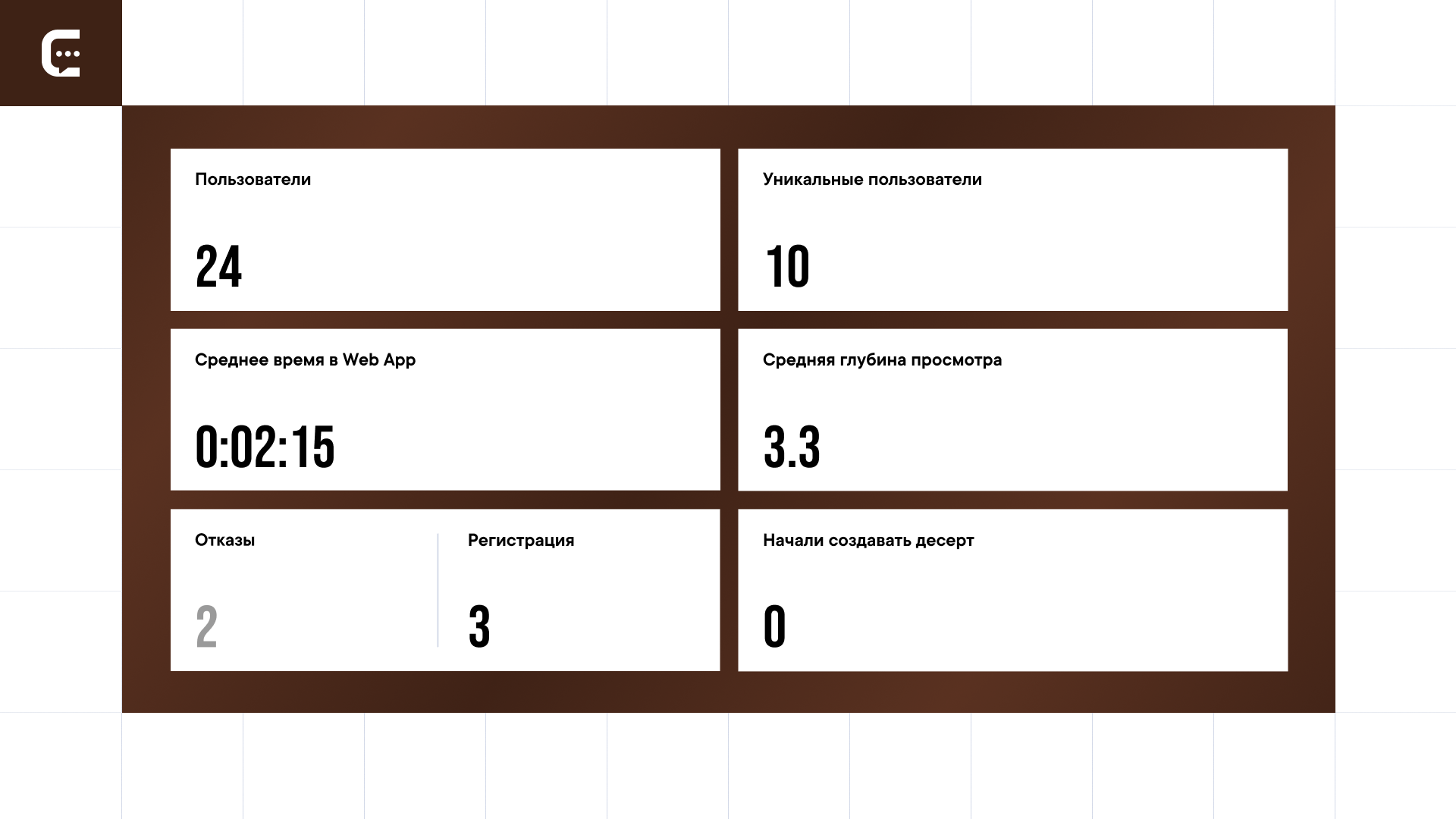 Есть возможность отслеживать этапы воронки: например, сколько пользователей начали создавать десерт (скриншот с тестовым запуском мини-аппа).