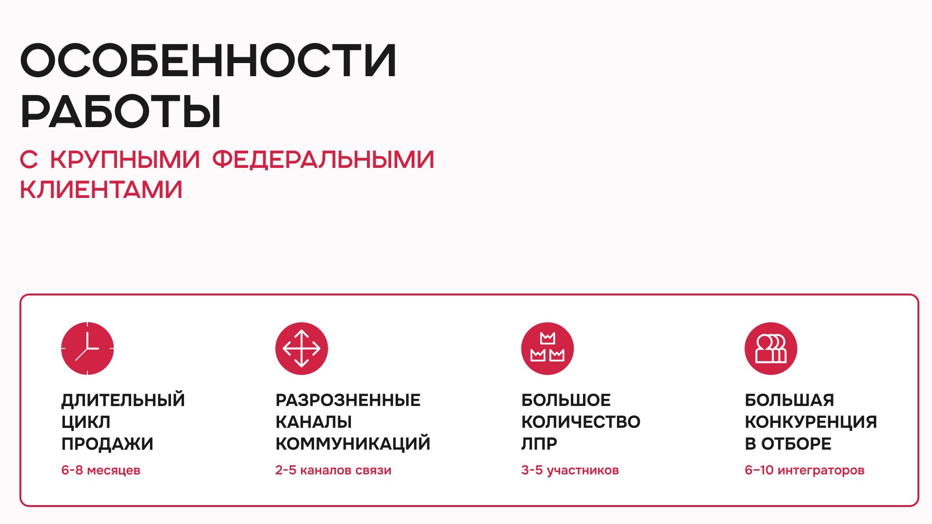 В нашем сегменте редко бывает так, что клиент точно понимает, что ему нужно, и готов купить «здесь и сейчас». Крупные корпоративные решения — это десятки согласований, совместные рабочие группы, постоянные изменения приоритетов у заказчика. Один из наших кейсов — промышленная компания, с которой мы начали переговоры в 2019 году. За это время у клиента сменилось три состава руководства, дважды менялись бизнес-приоритеты, а мы пять лет участвовали в тендерах, проводили встречи, готовили предложения и дорабатывали прототипы. Сделка состоялась только сейчас.