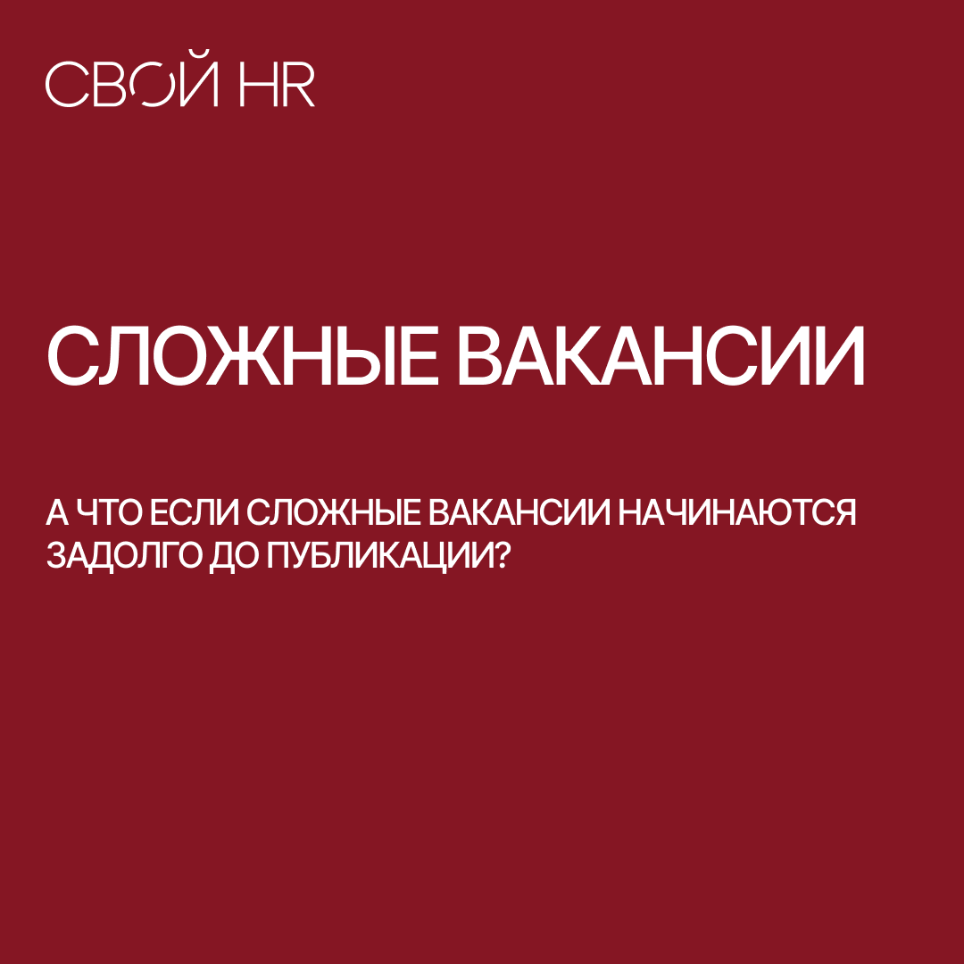 Когда слышу формулировку «сложные вакансии», мне каждый раз хочется с ней немного поспорить. За 20 лет в подборе персонала я бы вряд ли сказала, что бывают суперсложные вакансии. Бывают позиции, где уже на старте понятно: за 30 дней такого сотрудника ты не найдешь. Требования узкие, выборка небольшая, часть релевантных кандидатов занята на других проектах, часть не дотягивает по соседним критериям. Закрытие сложных вакансий в таких случаях требует нормального планирования срока поиска.