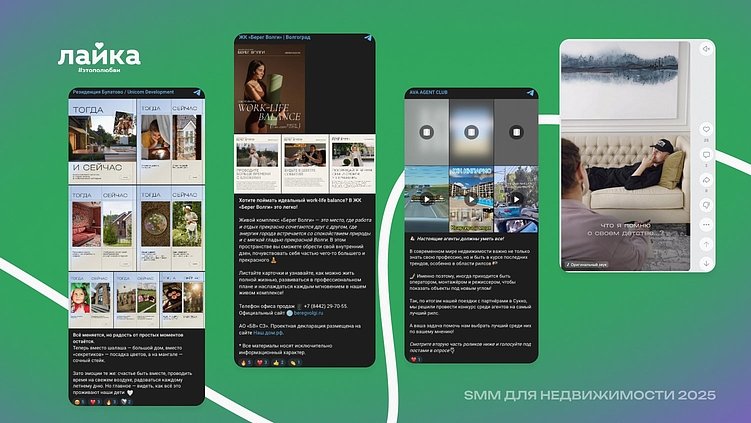 Пользователи хотят не просто видеть квартиры — они хотят почувствовать, как это: жить здесь, общаться с соседями, проводить выходные. В центре внимания видео-тур по квартире, истории реальных жильцов, микрогиды по району и реакция на актуальные события в инфополе. Именно это создает ощущение живого комьюнити, а не механического контент-плана. Успешные команды строят диалог, где есть место пользе, лёгкости и даже юмору. Живая, человечная подача позволяет не только привлечь внимание, но и сформировать лояльность задолго до сделки.