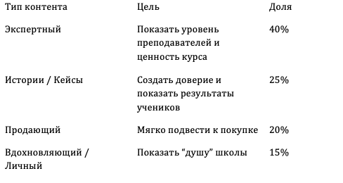 Кейс 1: Школа психологии После внедрения контент-плана, добавления видео от преподавателей и рубрики “истории выпускников”, вовлечённость выросла на 60%, а стоимость заявки снизилась на 40%. Кейс 2: Онлайн-школа английского языка Мы убрали продающие посты “в лоб” и добавили сторис “из жизни преподавателя”. Результат — рост подписчиков на 25% и увеличение заявок на 32% за 2 месяца.