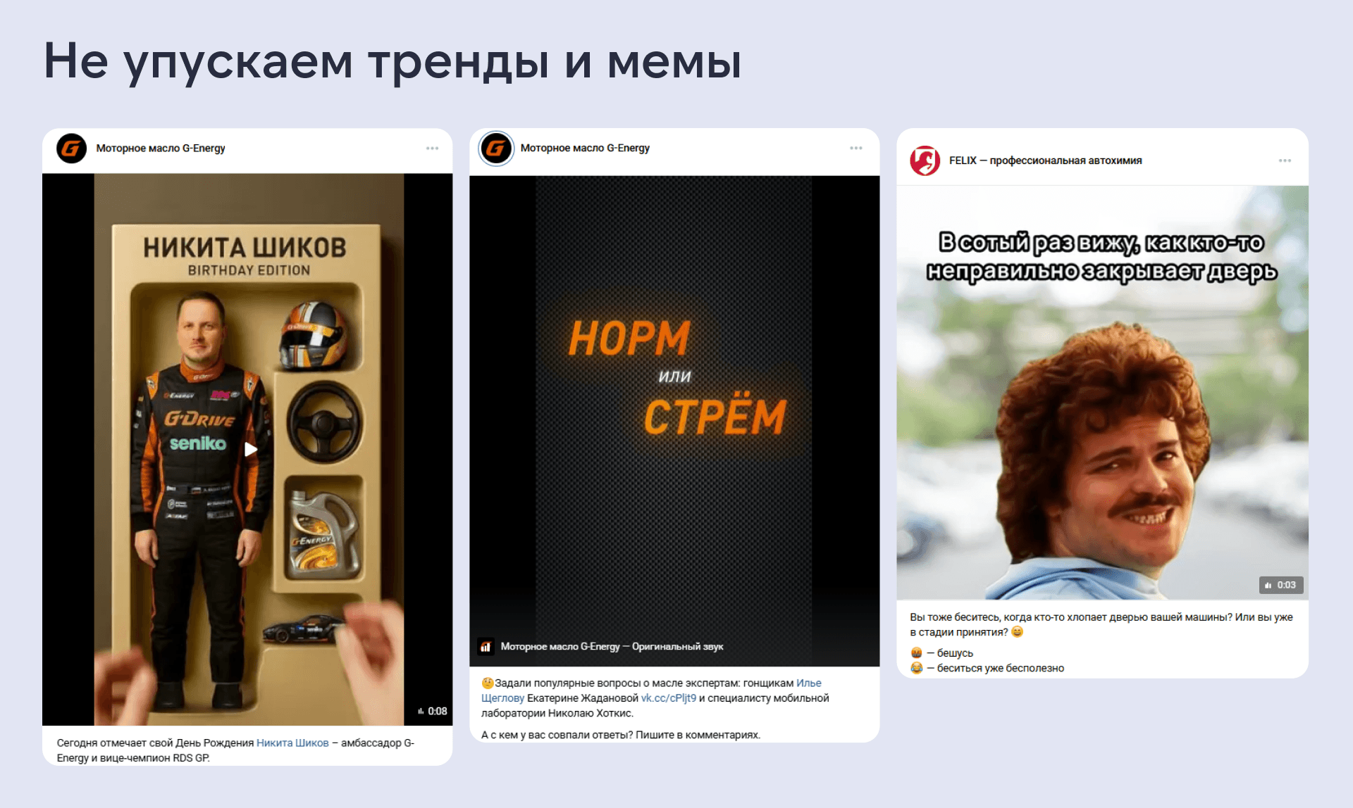 G-Energy, например, очень круто справляется с этой задачей. Вот несколько примеров постов, где удачно используются тренды.