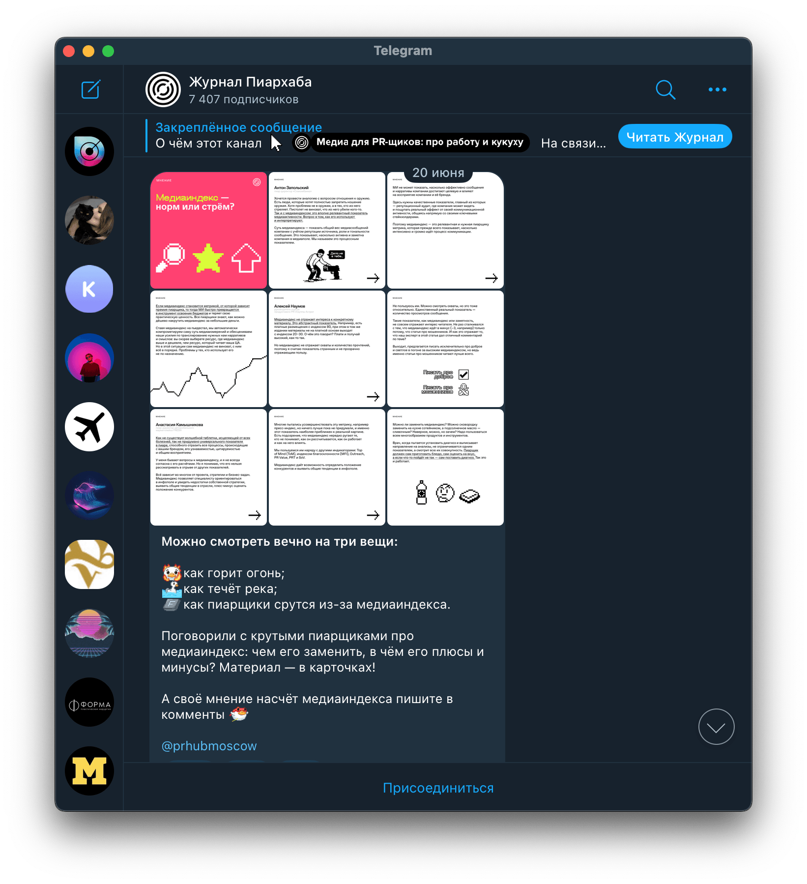 Сама идея суперцелевых подписчиков пришла к нам, когда мы работали над каналом для «Журнала Пиархаба»: