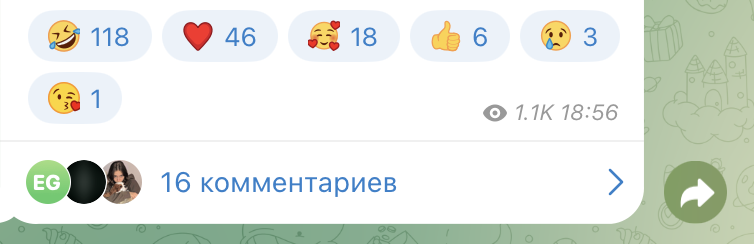 Главный показатель того, что подписчикам нравится ваш контент, — количество лайков, комментариев, реакций, просмотров и шеров. Например, если в Telegram-канале 200 тысяч подписчиков, а читают посты и ставят реакции 100 пользователей, скорее всего, в канал нагнали ботов.