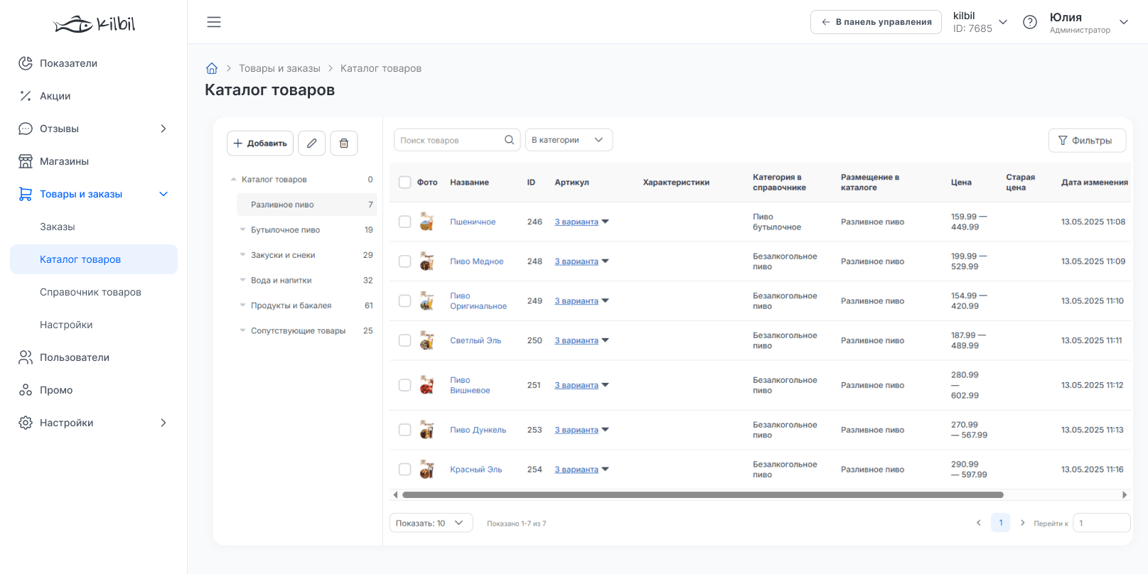 В панели управления легко самостоятельно работать с товарами