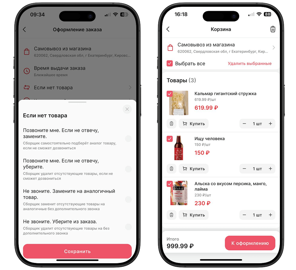 Особое внимание уделили работе с весовым товаром — можно указать цену за 100 г. и оформить заказ, как в офлайн точке.