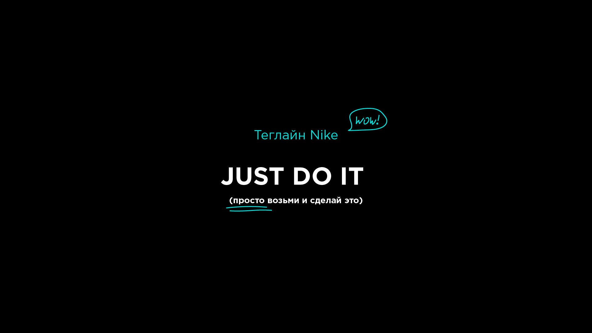 Задача теглайна ― помогать связывать коммуникацию с брендом, а также ― дифференцировать бренд в ряду конкурентов. Поэтому нередко теглайн является частью фирменного блока, стоит на любом принте и появляется в любом ролике. Если вы помните какую-то фразу про бренд, почти наверняка это ― теглайн. Иконическим примером является знаменитый теглайн JUST DO IT от Nike.