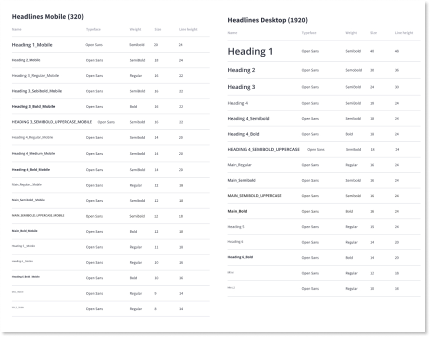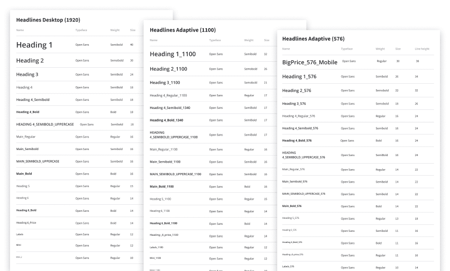 9. Обязательно делаем таблицу адаптивности шрифтов: десктоп-мобайл. И строго соблюдаем эти размеры в макетах.