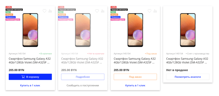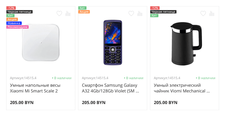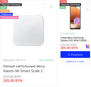 1. В превью товаров (если это не противоречит ТЗ проекта) нужно показать следующие элементы: