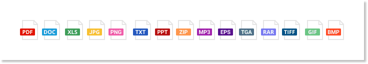 3. Отрисовать иконки основных форматов файлов для документов: pdf, docx, xls, txt, ppt, mp4, rar, zip, jpg, gif, png, avi, mp3 (остальное в зависимости от проекта).