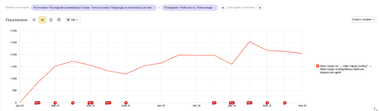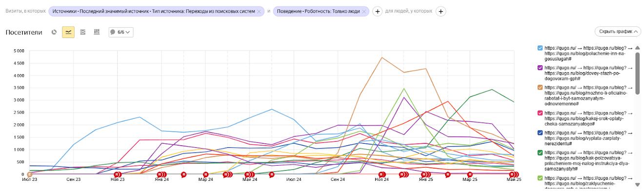 В сумме, умело ранжируя и планируя разные типы статей, мы получаем компенсацию падения спроса путем вывода в топ и получения качественного трафика в новых, а также «вечных» в статьях.