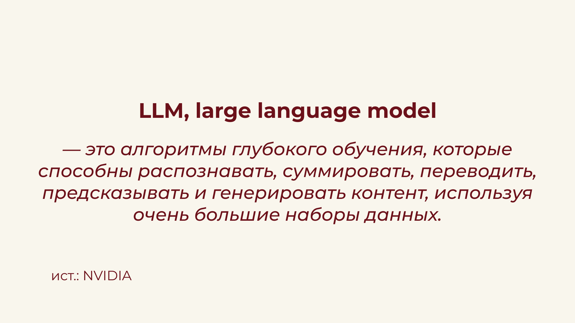 ИИ не создает уникальное и новое — только собирает наиболее популярный ответ из массива данных и представляет его в читаемом виде. Внимание: популярный, а не качественный или уникальный! Ответы ИИ общие, часто недостоверные или не решающие реальный запрос.