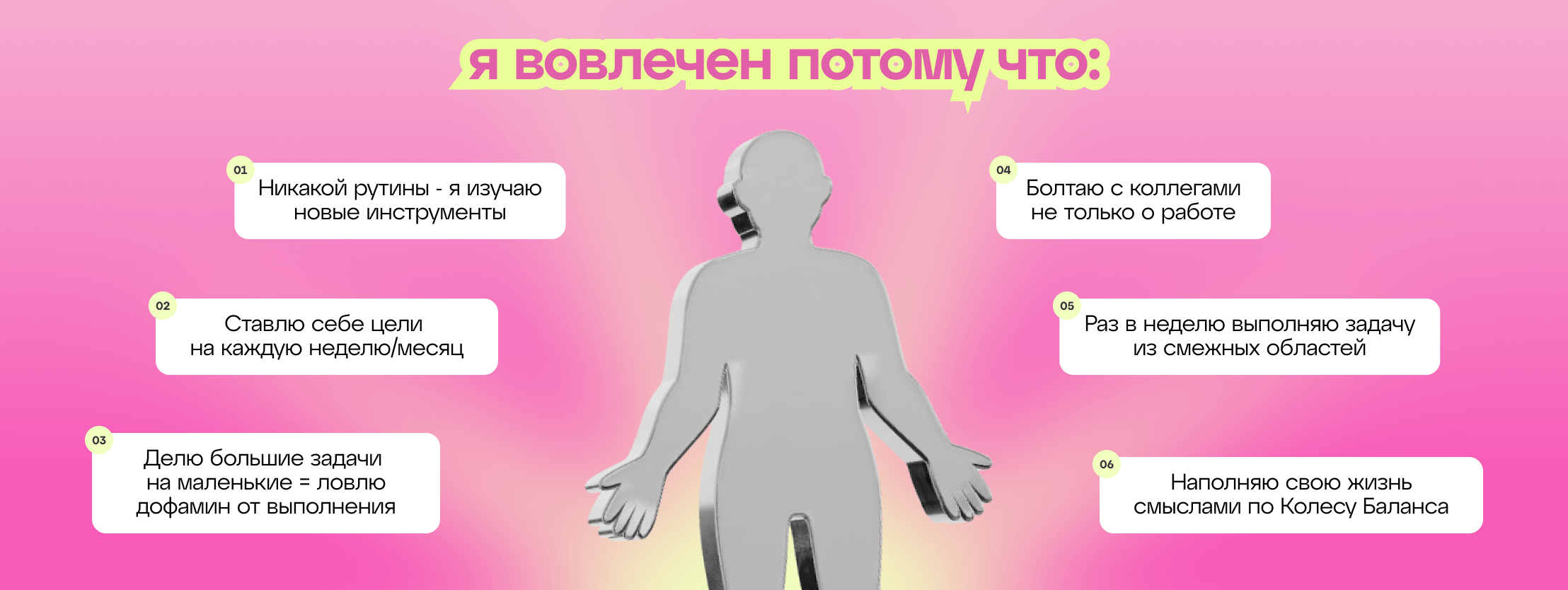 Умение работать с личной вовлеченностью — это очень крутой soft skill! Если ваши поиски привели вас к другим работающим методам, поделитесь с нами по почте hr@metrikadigital.ru.