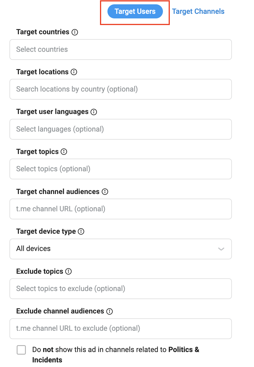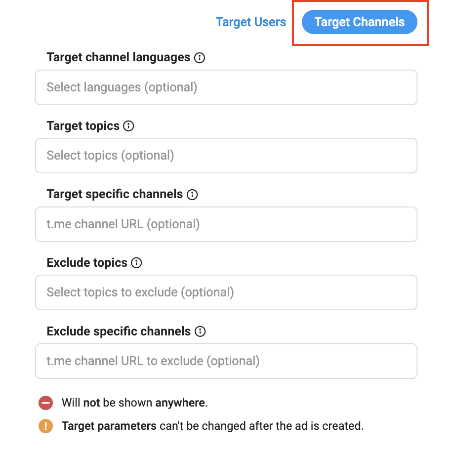 А если вы, к примеру, из Беларуси и хотите запустить TG ADS, то вы можете показывать рекламу в белорусских телеграм-каналах.