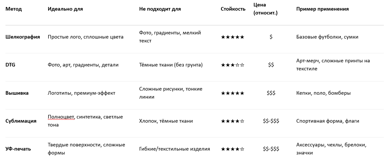 2. Методы нанесения: от шелкографии до сублимации – что выживет после 20 стирок?Второе правило: Способ печати должен соответствовать цели, носителю и бюджету.