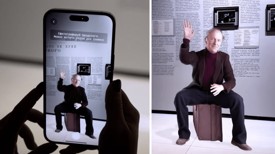 3. Другой успешный пример геймификации — AR-квест, разработанный в рамках выставки «Иосиф Бродский. Место не хуже любого» в Еврейском музее и центре толерантности. Команда проекта использовала дополненную реальность, чтобы погрузить посетителей в мир творчества Бродского через знаковые предметы из его жизни. Пользователи с помощью приложения «Метакультура» и QR-кодов находили виртуальные объекты в залах выставки, собирая их в метафорический чемодан, слушали любимые музыкальные пластинки поэта, участвовали в литературной дуэли с искусственным интеллектом — нужно было отличить стихи Бродского от произведений, созданных нейросетью GigaChat.