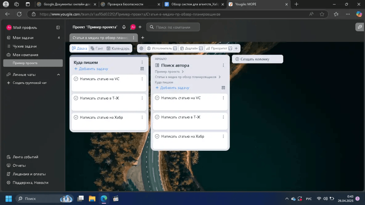 Простота и широкие базовые функции делают сервис отличной системой управления задачами для небольших команд. Особенно впечатлили встроенные в задачи чаты — думаю, они и делают этот планировщик одним из самых удобных. Еще приятный бонус: для моей команды YouGile бесплатен, если же команда вырастет больше 10 человек — 495 ₽ за человека кажется справедливой ценой.