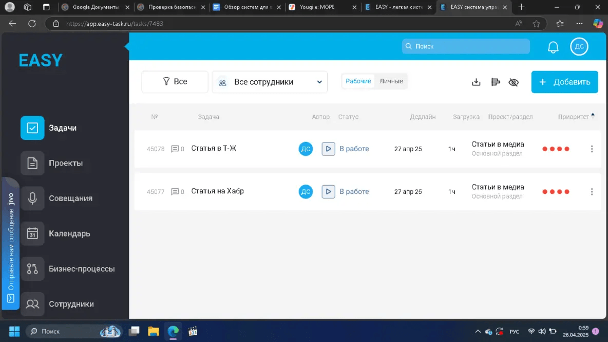 Если бы у меня был средний или крупный бизнес и нужна CRM с таск-менеджером «в одном флаконе» — я бы рассмотрела систему управления проектами Аспро.Cloud. Но для маленьких команд или управления задачами он избыточен и дорог.