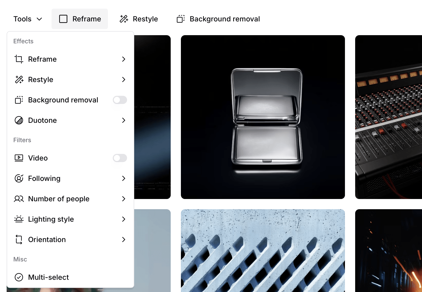 Можно искать не только фотографии, но и векторные иллюстрации, 3D-объекты, даже стилизованные кадры под нужный проект. Это удобно, когда делаешь лендинг или интерфейс с разным типом контента.