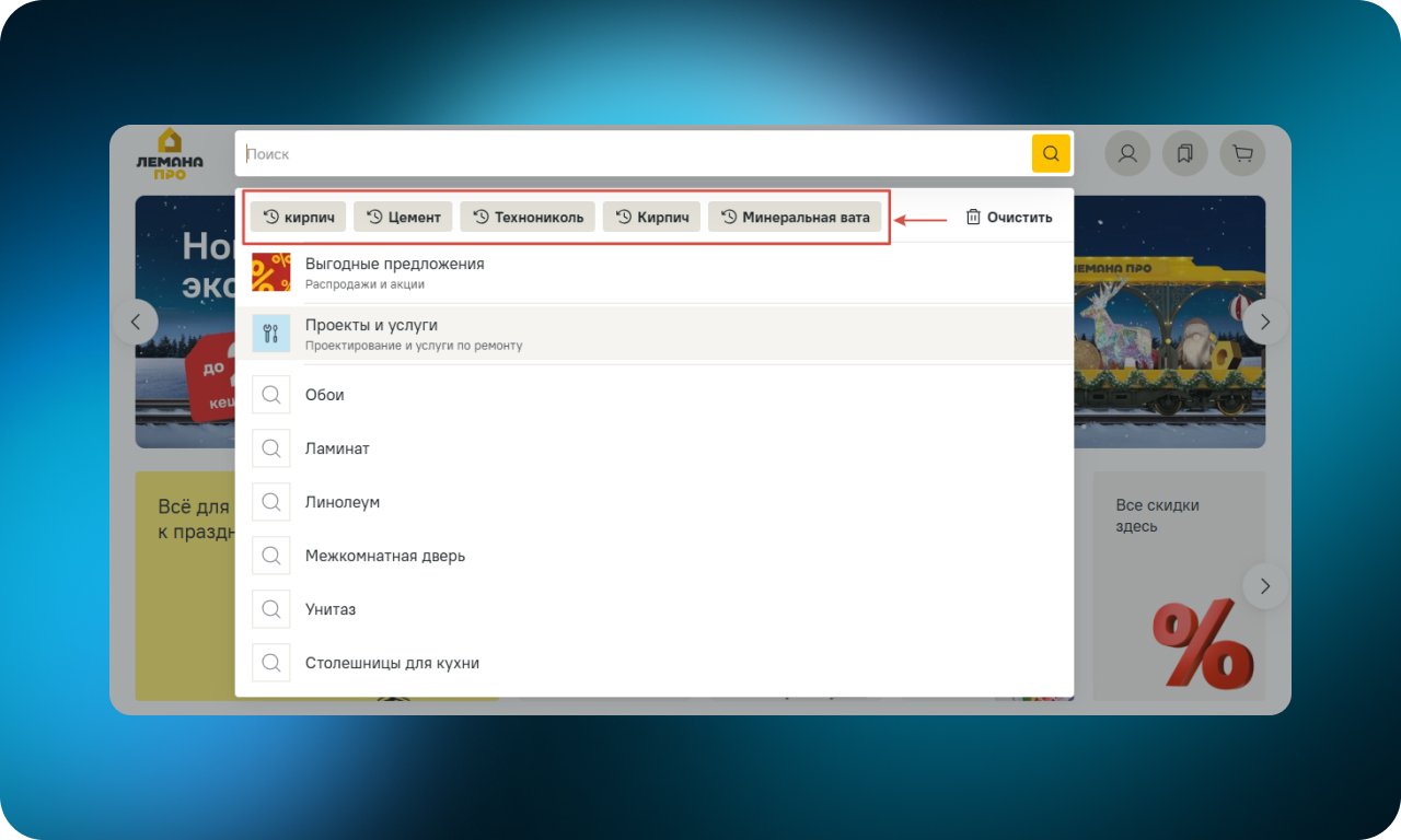 Поисковая строка запоминает предыдущие запросы и выводит их в списке. Это помогает быстро вернуться к уже просмотренным товарам или повторить поиск без повторного ввода. Сценарий становится короче и спокойнее, без лишних действий.