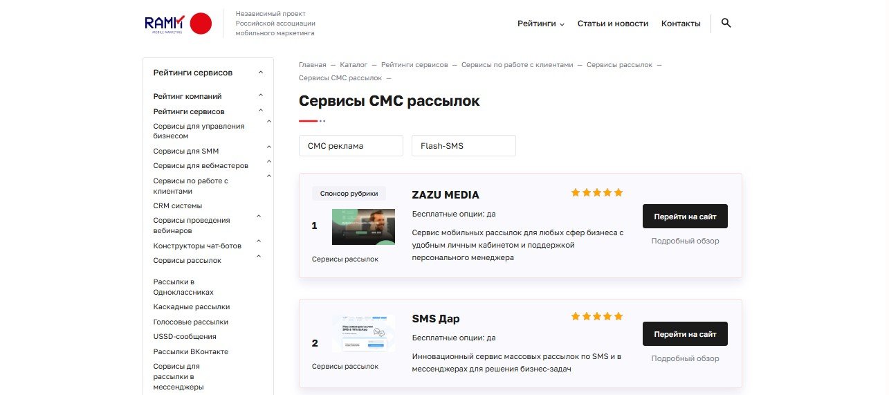 В этой статье мы собрали ТОП-10 лучших сервисов СМС-рассылок по версии независимого рейтинга Российской Ассоциации Мобильного Маркетинга: