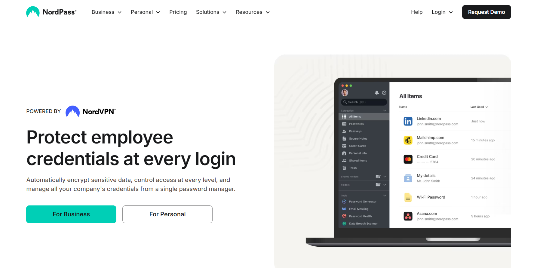 NordPass обеспечивает безопасное хранение и синхронизацию паролей, данных банковских карт и защищенных заметок на всех подключенных устройствах.