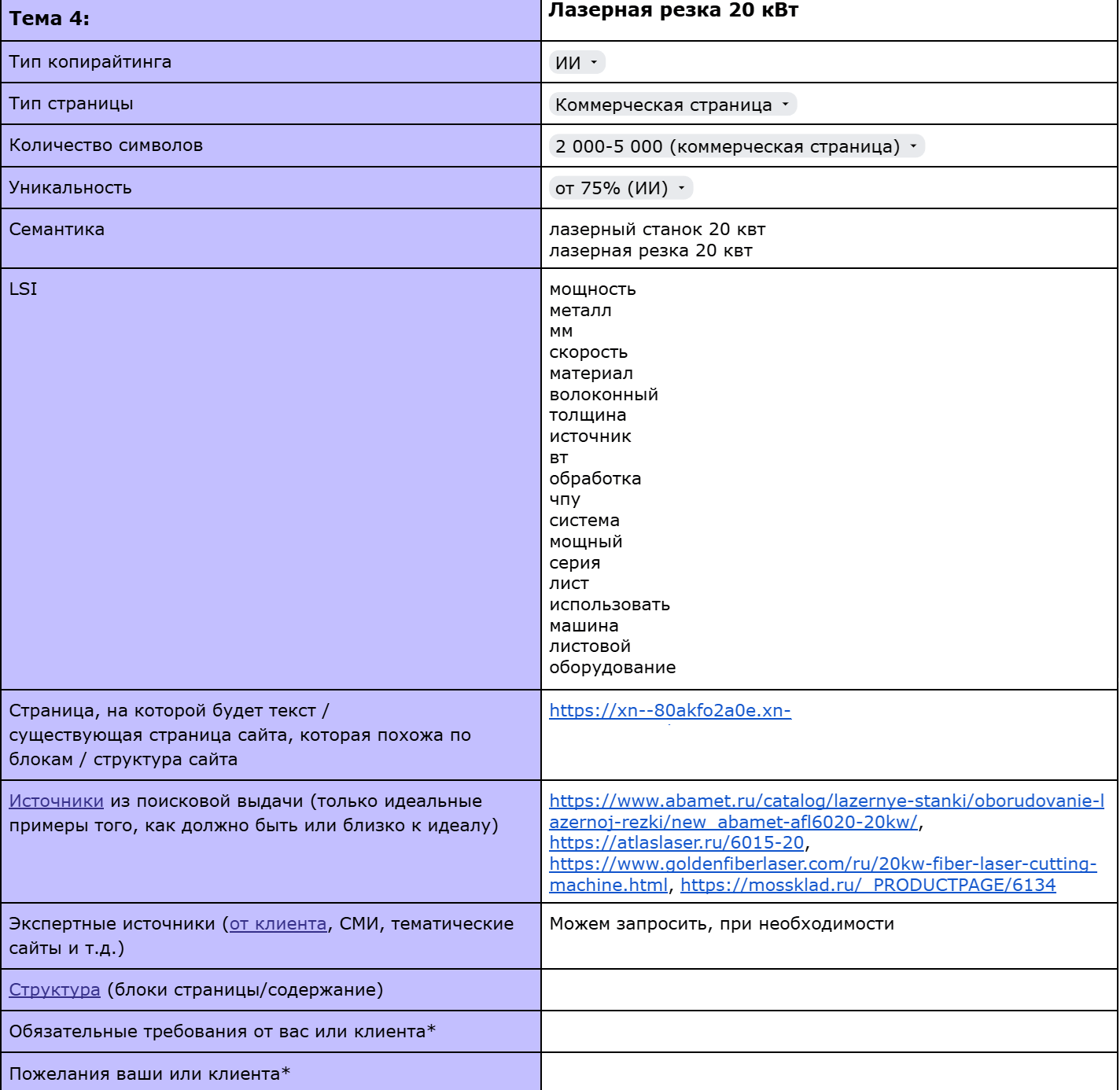 Желательно, чтобы вы детально описали задачу для копирайтера, особенно если он работает с ней впервые. Подробные вводные помогают правильно расставить акценты в тексте, составить его оптимальную структуру и подобрать релевантные примеры/факты. А без этой информации автор действует практически вслепую.