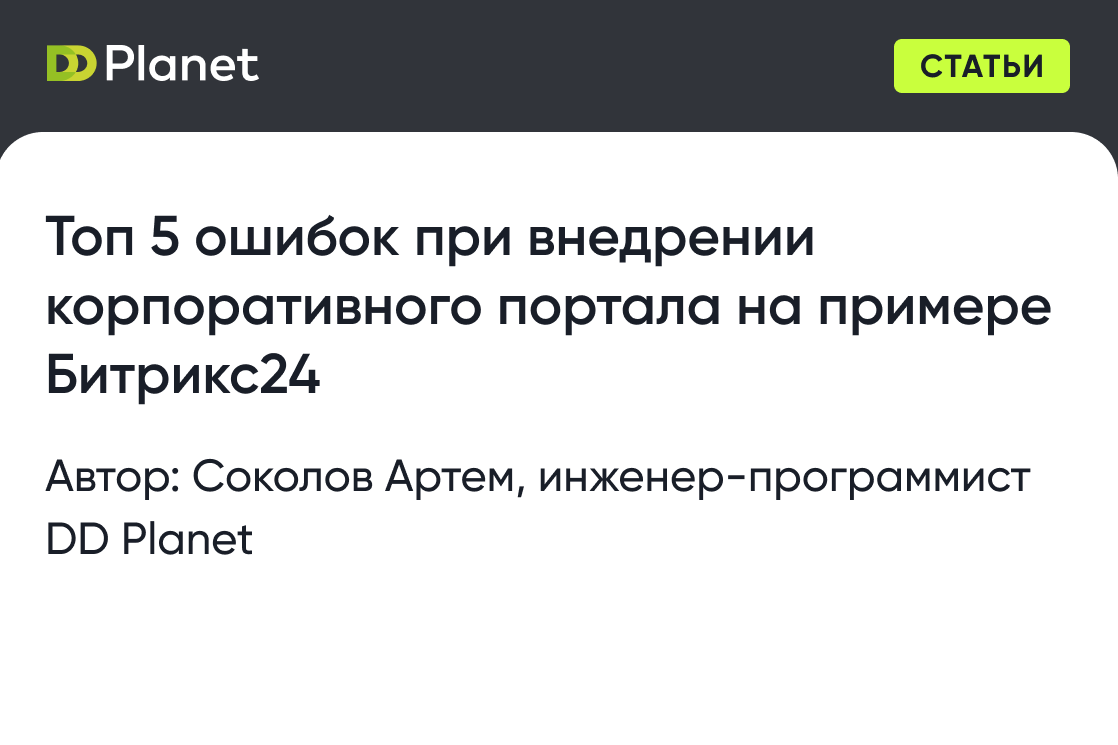 Также важны hard и soft скилы у команды разработки и управления и степень их погружения в текущие бизнес-процессы клиента. Чаще всего клиент нуждается в комплексном решении, автоматизация которого охватит все или большинство отделов компании. С такой задачей отлично справляются корпоративные порталы. В этой статье мы рассмотрим 5 ошибок при внедрении одного из самых популярных решений — Битрикс24.