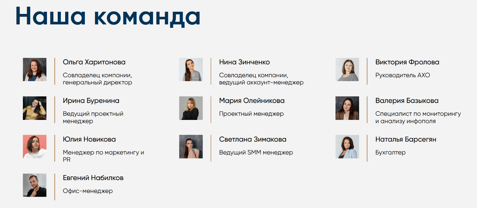 Итак, грамотный раздел о команде приносит пользу в нескольких аспектах. Он помогает строить коммуникацию с клиентами еще до личного контакта, снижает количество вопросов на старте сотрудничества и усиливает восприятие бренда как профессионала. А чтобы тексты о сотрудниках были эффективными, их нужно регулярно обновлять и адаптировать под меняющиеся задачи компании.