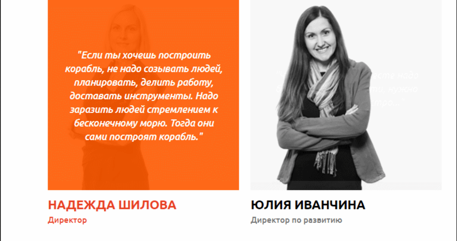 Исключение — разработка страницы с каким-то сторителлингом, если вы, например, креативное агентство или просто рассматриваете раздел о команде как отдельный спецпроект. Тогда возможности эксперимента, в том числе над стилем и лексикой, поистине безграничны.