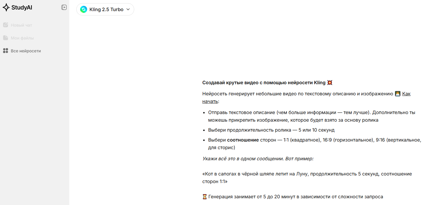 Начните с 15–30-секундных роликов для TikTok или Reels. Они генерируются быстрее, требуют меньше кредитов и легче дорабатываются.