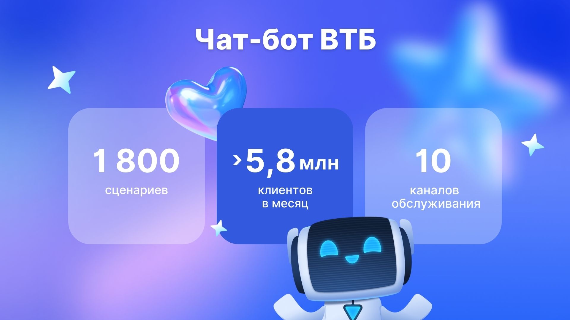 Их "Помощник ВТБ" научился распознавать два вопроса в одном сообщении и отвечать разными словами на повторные запросы. Machine learning внедрили в 800 из 1800 тематик бота.