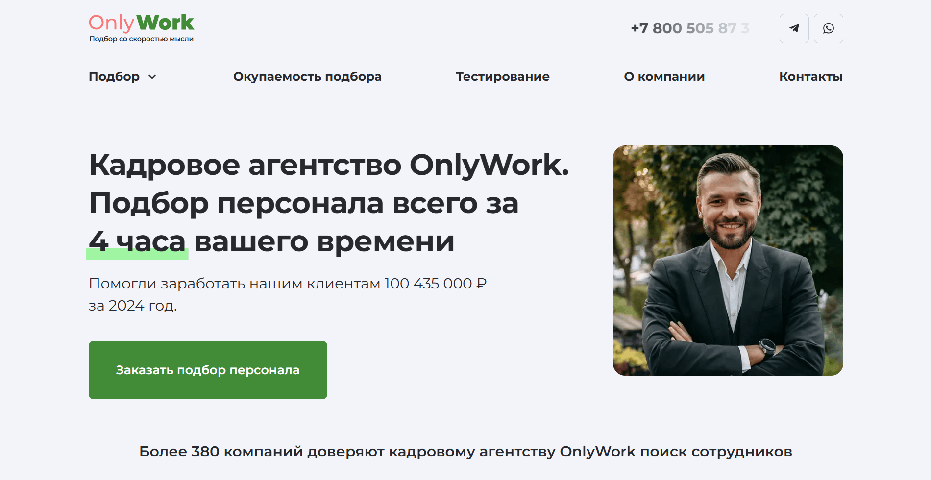 Стоимость подбора: 12% годового дохода с гарантией на 1 месяц, 15% годового дохода с гарантией на 3 месяца.