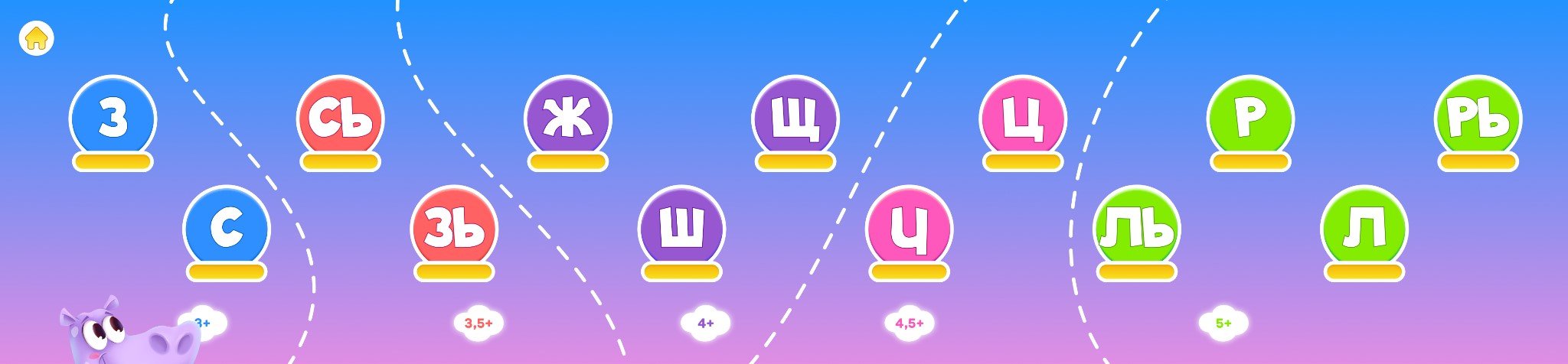 Этот раздел приложения включает 15 курсов с более чем 1000 игр. Здесь упор делается на правильное произношение сложных звуков (Р, Л, Ш, С и другие), а также на развитие словарного запаса и построение фраз. Курсы подойдут как для малышей, которые только учатся говорить, так и для детей, нуждающихся в коррекции речи.