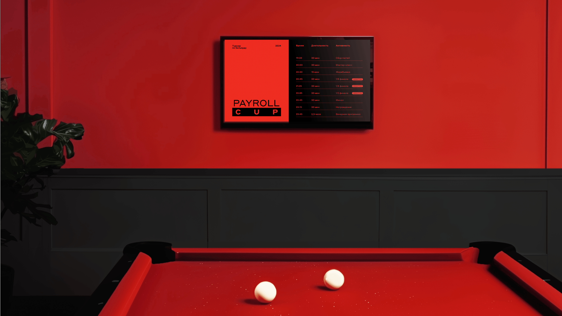 Сложилась очень точная и яркая айдентика для для закрытого мероприятия Альфа-Банка: турнира по бильярду.