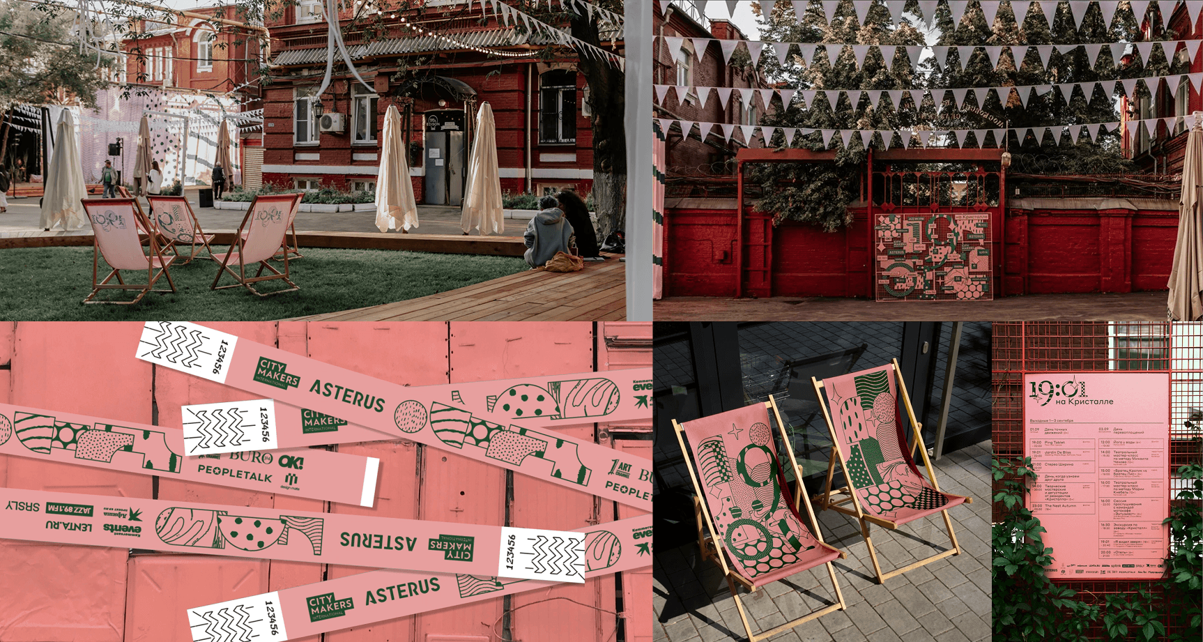 Отразить многообразие смыслов получилось через коллаж и совмещение разных стилей, форм и текстур. Айдентика развернулась не только на плакаты, но и органично легла на стулья, арт-объекты, бумажные браслеты.