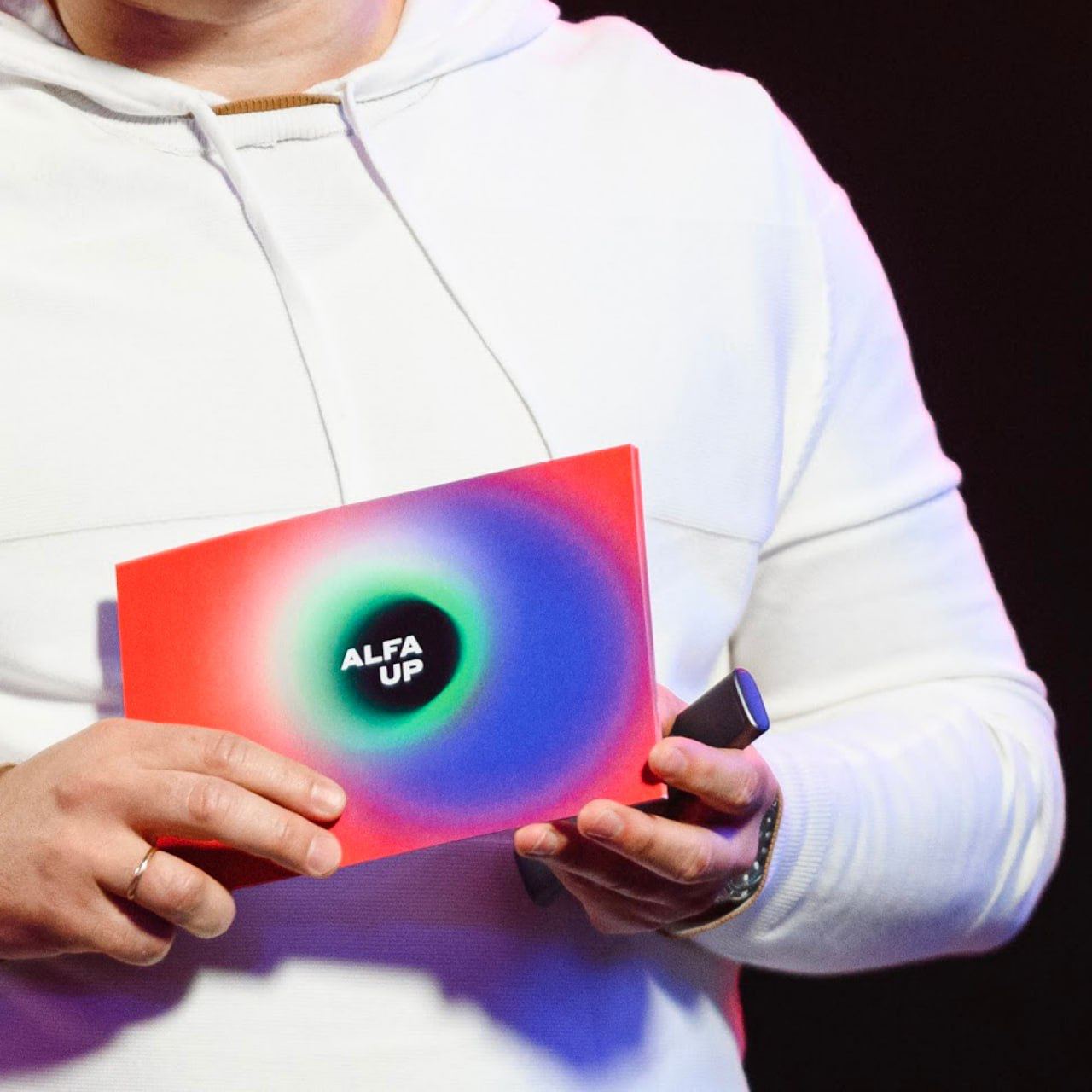 Не менее яркий пример: Alfa Up Pitch Day — ключевое событие компании. Дух инноваций и скорость решений мы превратили в визуальный язык. Где-то это плавный градиент, размывающийся от ускорения, чтобы подчеркнуть динамику. Где-то — элементы гоночного трека, чтобы показать метафору движения вперёд.