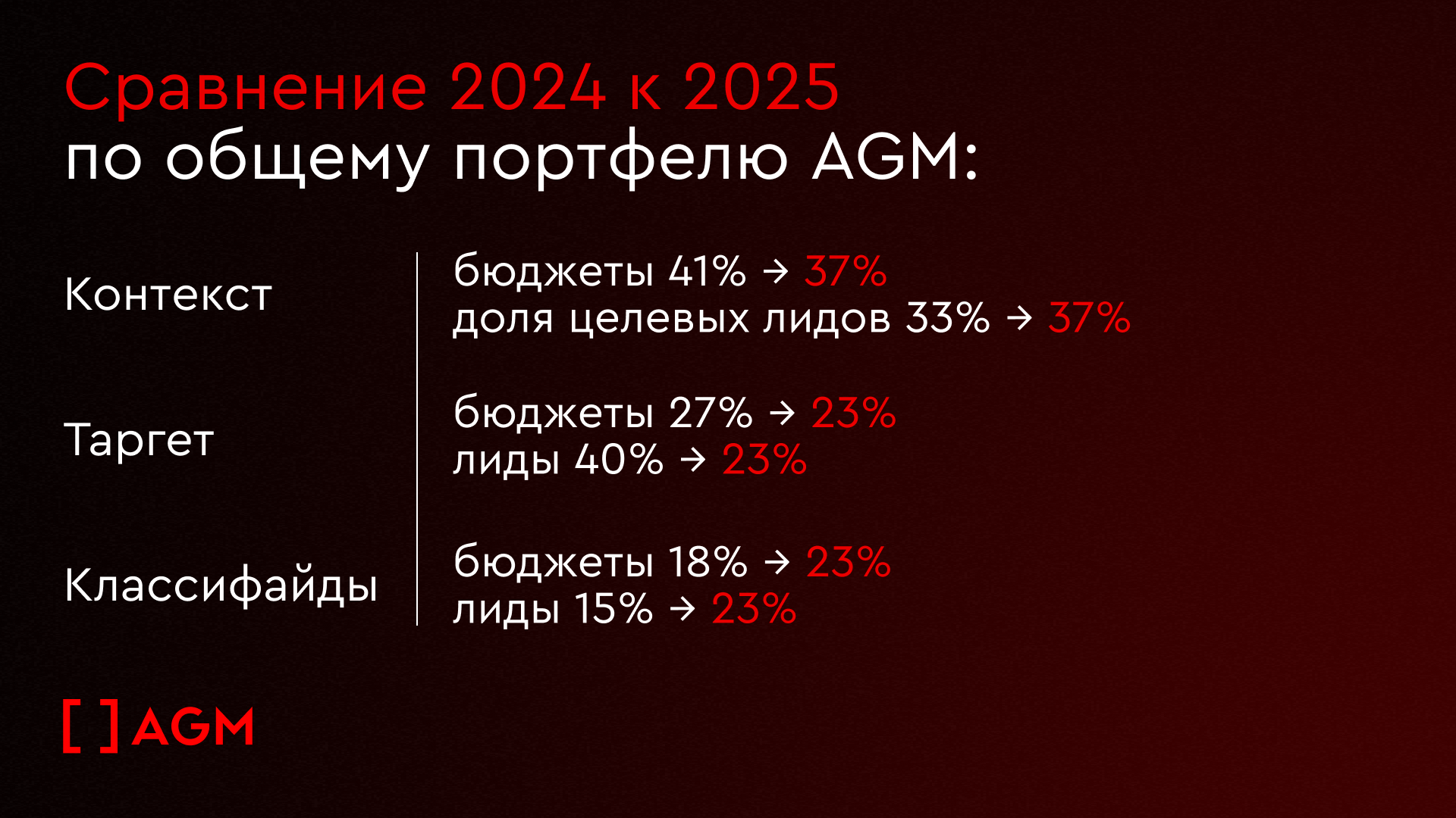 Даже в меняющихся условиях рынка, мы знаем, как снизить стоимость целевого лида. Читайте кейс AGM «Как снизить qCPL на 60% при сокращении бюджета».