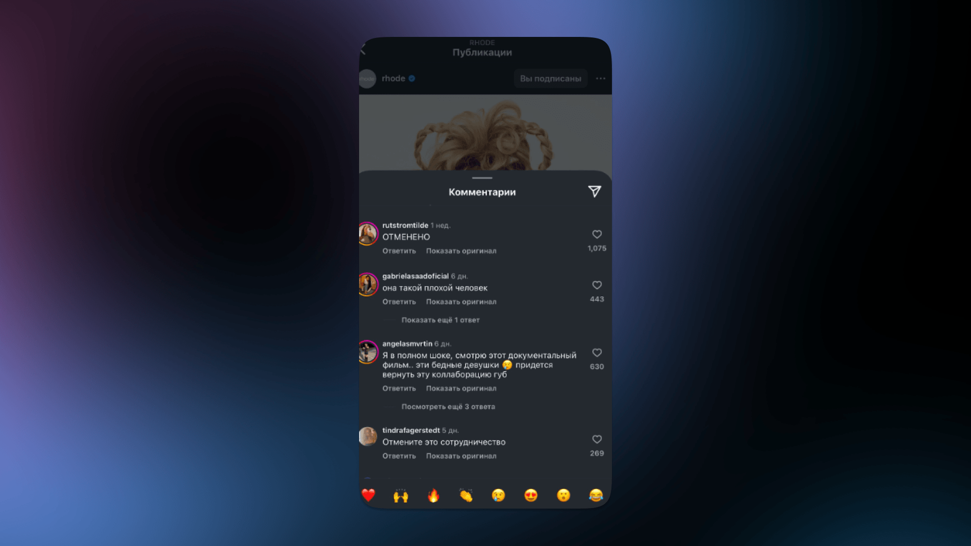 Это противоречие между публичным образом инфлюенсера и реальными фактами привело к массовым негативным реакциям со стороны аудитории и призывам «отменить» Матильду, что плохо отразилось на восприятии коллаборации и бренда Rhode.